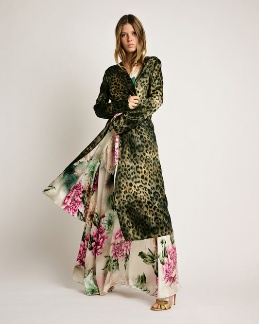 Norma Robe Rev Gardenia Silk Strech/Leopard Silk Strech