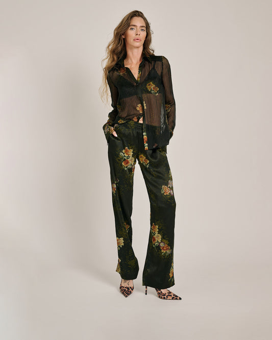 Emery Silk Pants Garden Dark Green