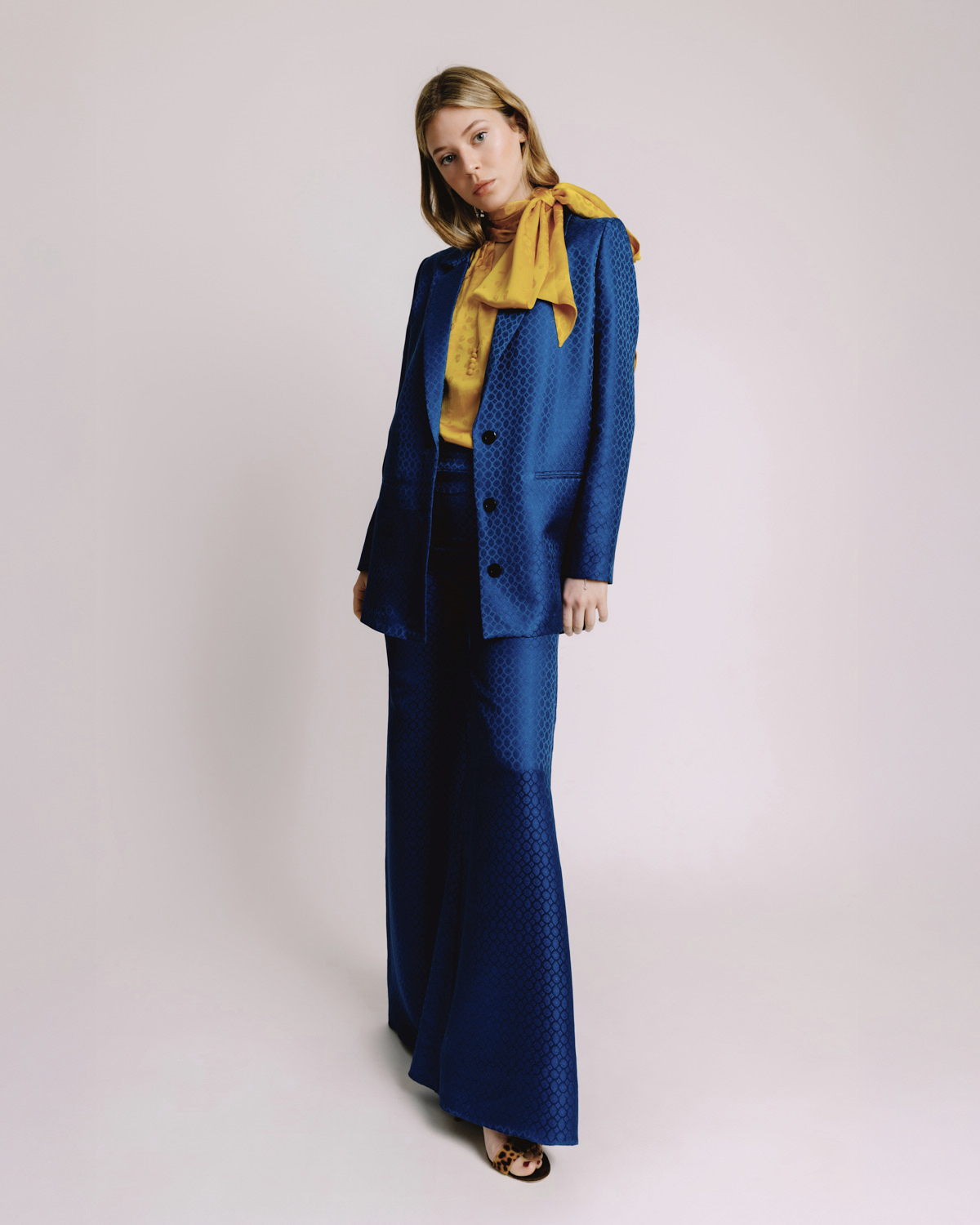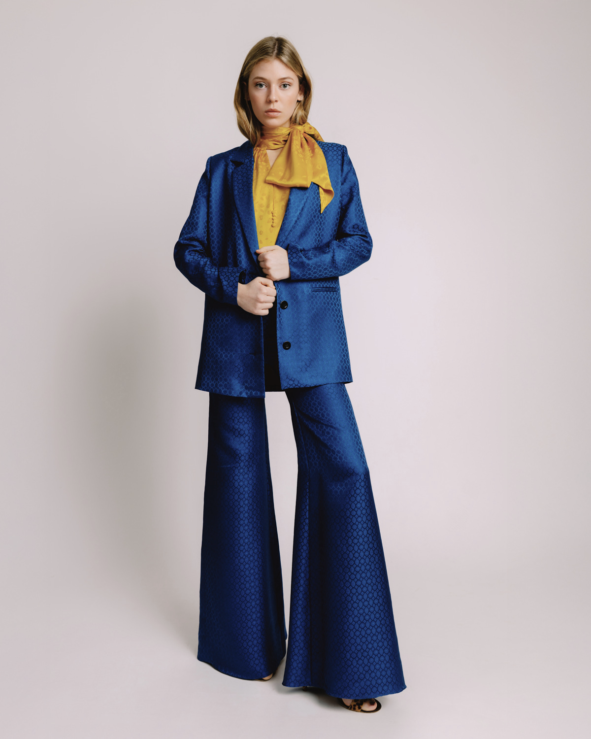 Style it with the matching jacquard trousers for a head-to-toe statement ensemble, pair it with the yellow silk jacquard leopard-print blouse for a bold contrast, or wear it simply over the Hollywood Shirt—or even nothing at all for a sleek, daring look. Strong, structured, and undeniably sophisticated.