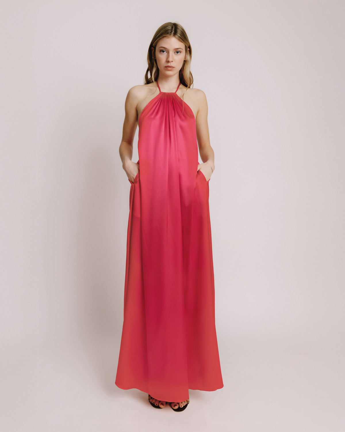 The effortless elegance of the Eden Dress, now in a rich, solid strawberry red—perfect for those who love a bold color without prints. With the same free-flowing, one-size silhouette, this dress adapts beautifully to any body, thanks to its elasticated gathering that creates natural volume and movement. The halter neckline ties at the back, leaving the entire back open for a look that’s both sophisticated and effortless.