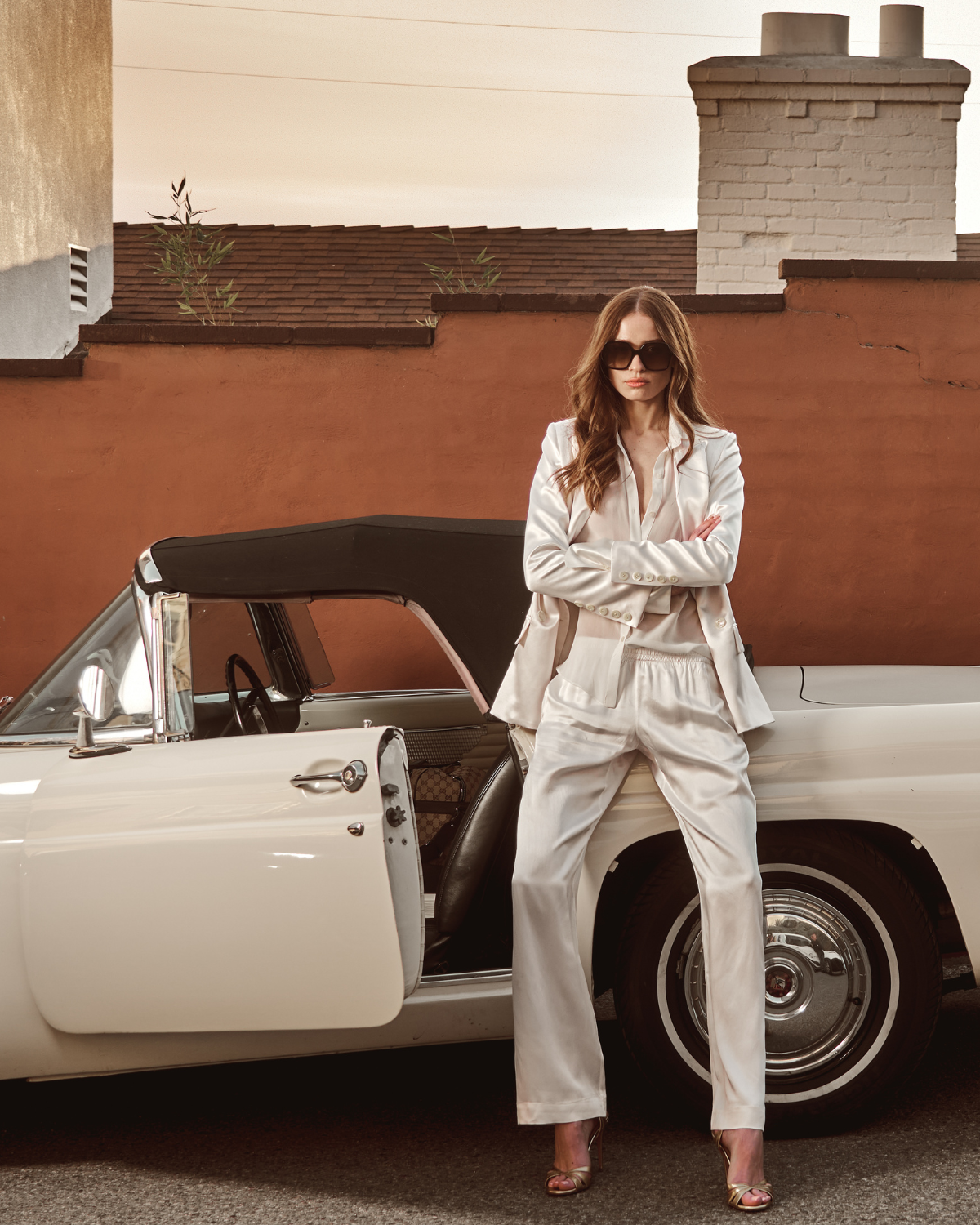 Effortlessly chic and unbelievably comfortable. These lightweight, silky trousers are designed with a relaxed, elastic waistband, making them perfect for summer—whether you’re dressing up or keeping it casual. Wear them as part of a full white suit with the matching double-breasted blazer for an elegant yet easygoing look, or style them solo with a tank top for that luxurious, pajama-inspired feel.