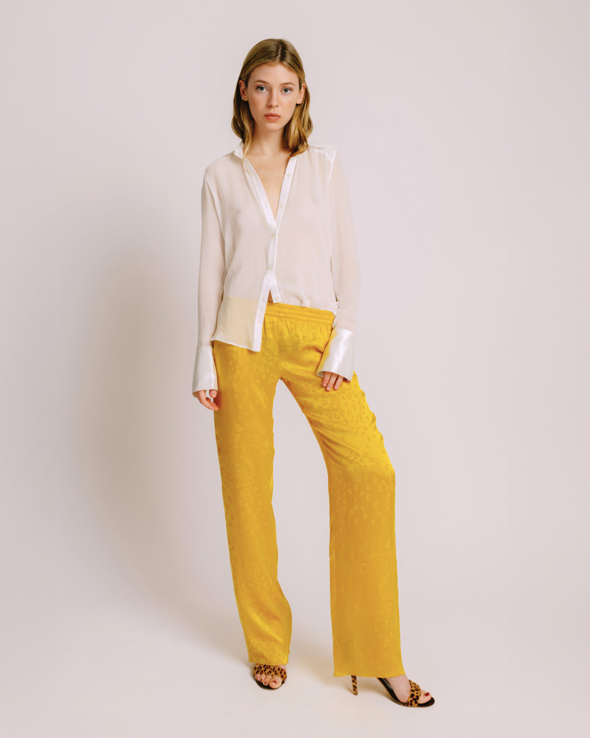 An eternal wardrobe essential, effortlessly elegant and endlessly versatile. Crafted from delicate, slightly sheer white silk chiffon, the Hollywood Shirt is designed to be light, feminine, and subtly sensual. The satin silk cuffs add a refined touch, making it just as perfect for a sharp tailored look as it is for something soft and romantic.
