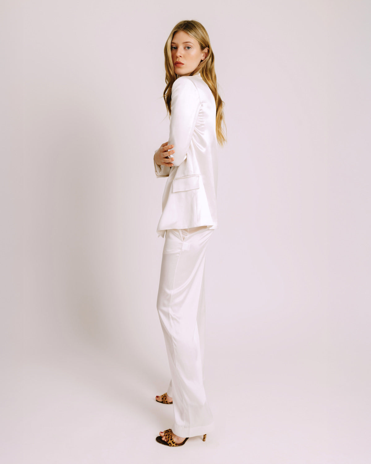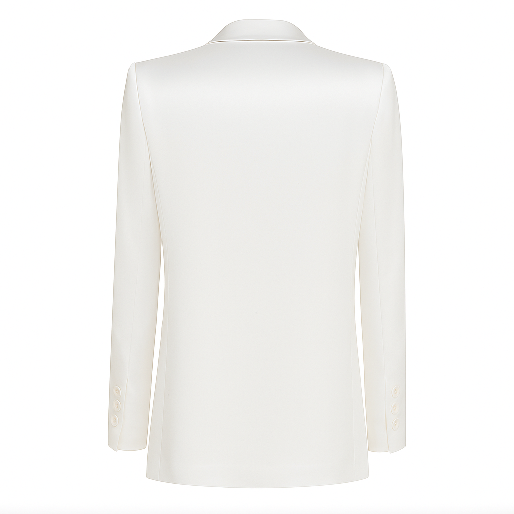 A timeless summer essential—because you can never go wrong with a crisp white suit. This perfectly tailored double-breasted blazer is all about effortless sophistication, whether you’re dressing up for a sunset dinner, heading to a summer event, or just want to elevate your everyday look. Wear it with the matching trousers for a sleek power suit moment, or throw it over denim for that chic, undone elegance.